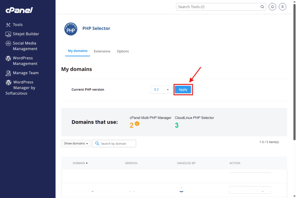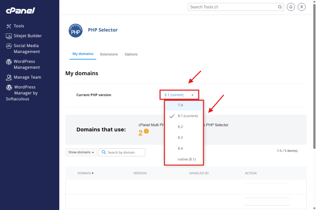 3. Select the version you need (e.g., 8.1 is recommended for most modern WordPress sites).