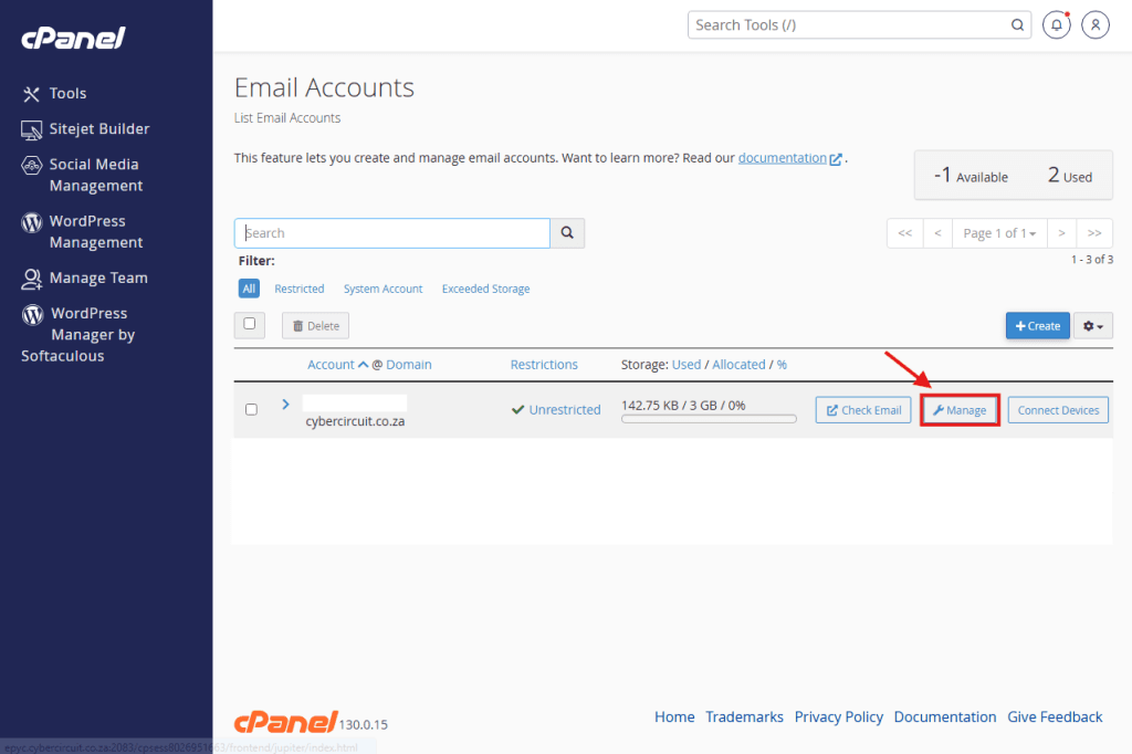 - Click Manage next to the email address.