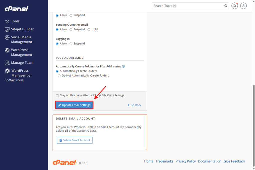 - Click Update Email Settings.