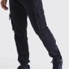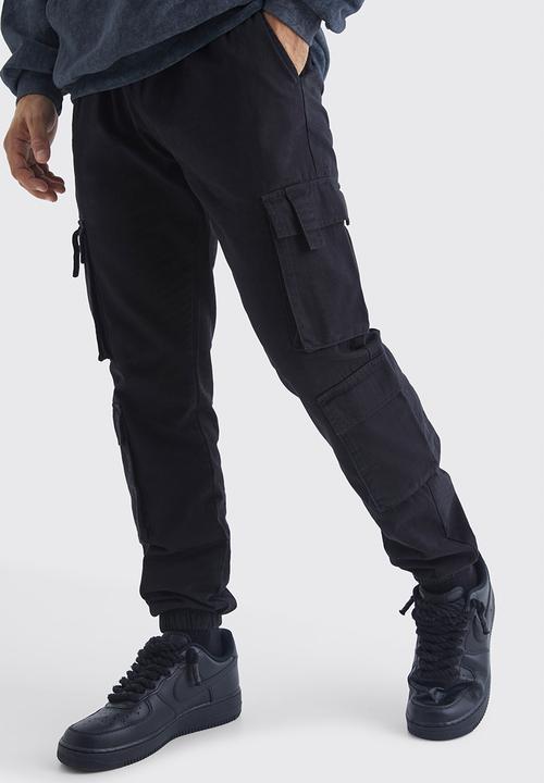 Elasticated Waist Multi Cargo Pocket Slim Fit Jogger – Black
