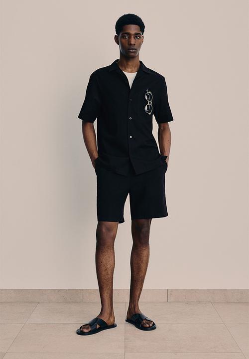 Featuring a classic collar and button-down front, this shirt is designed for effortless wear, whether you’re heading to the office, a weekend brunch, or a night out. The rich black color adds a touch of sophistication, allowing it to be easily paired with chinos, jeans, or shorts for a well-coordinated outfit.